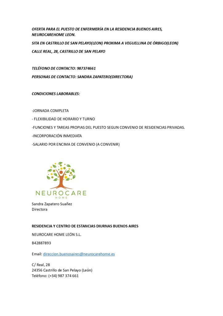 Oferta de empleo en Castrillo de San Pelayo. Residencia de personas mayores.