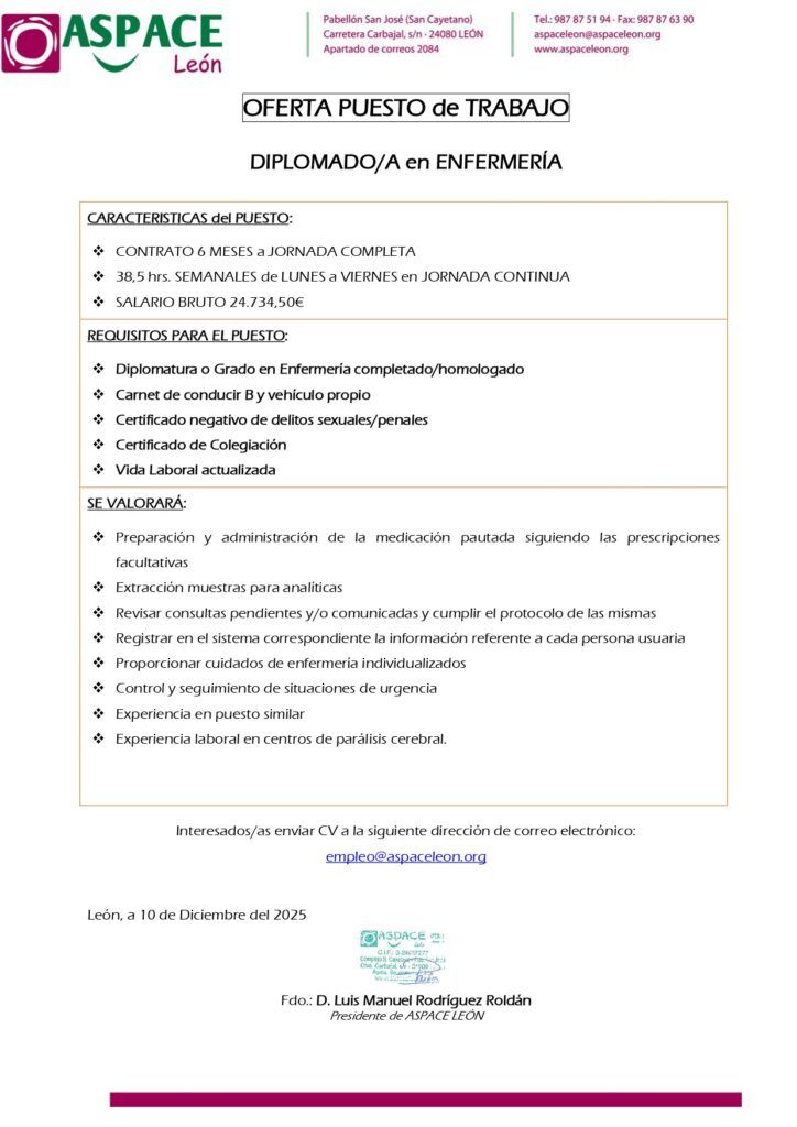 Oferta de empleo en León. Residencia de ASPACE.