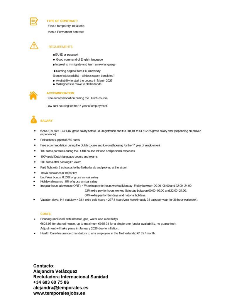 Oferta de empleo en Países Bajos.
